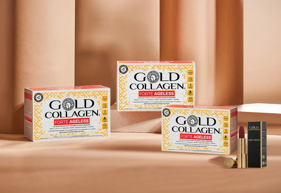 Bundle Box Summer Glow - 10 flacoane x 50ml Gold Collagen Forte Ageless + 1 x Gold Collagen Velvet Rouge Lipstick