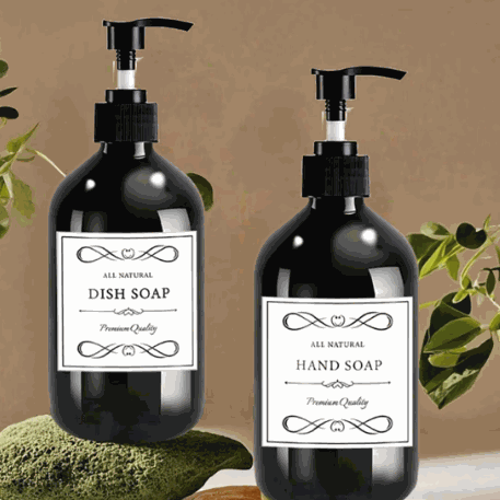 Set 2 recipiente tip dispenser pentru săpun lichid, gel de duș, șampon sau balsam, 500 ml, culoare negru lucios